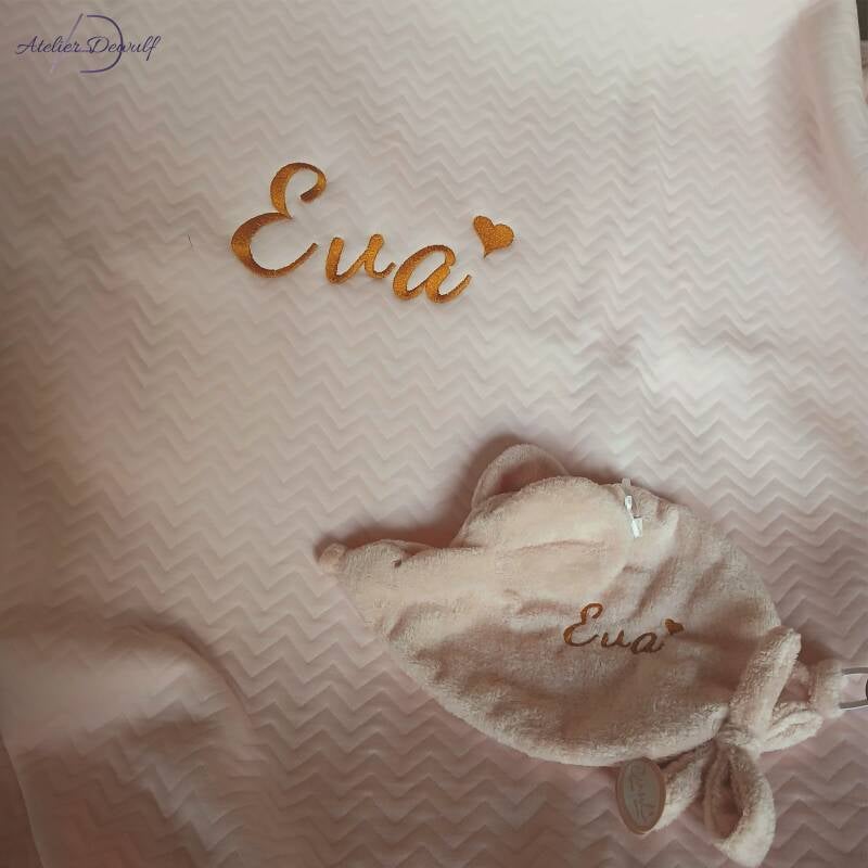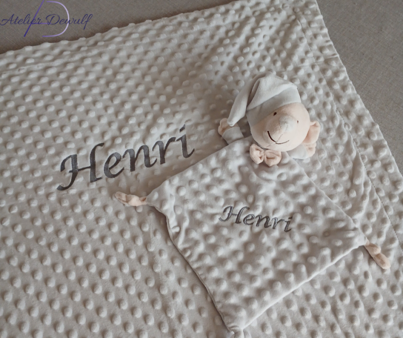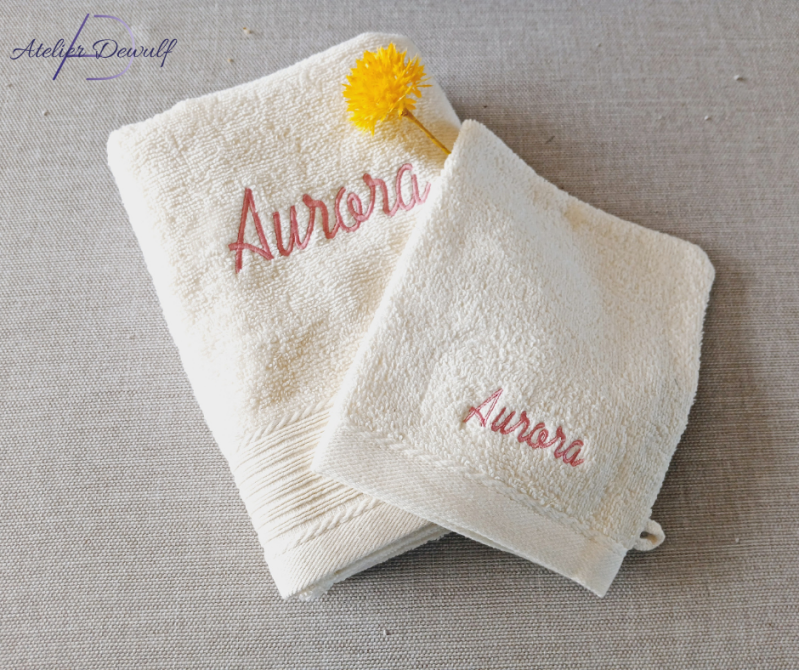 Wij bieden de keuze uit 14 standaard lettertypes. Wens je echter een speciaal lettertype, zoals bijvoorbeeld het lettertype van het geboortekaartje, dan ontvang ik graag een duidelijke scan van het geboortekaartje. De naam op het kaartje wordt exact overgenomen en geborduurd op jouw artikel.